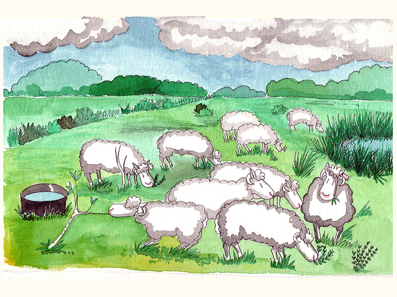 Landschaftspflege und Plaggenwirtschaft: Schafherde bei der Arbeit (Aquarell)