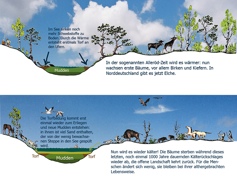Informationstafeln zur historischen Moorentwicklung (mit Buntstift und PhotoShop bearbeitete Vorlagen)
